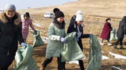 Өзгөндөгү студенттер Ош—Бишкек жолунун боюн тазалашты