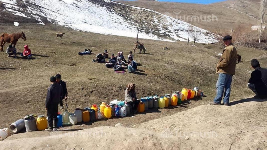 В селе Таш-Башат Узгенского района местные жители выстраиваются в очередь к источнику (фото)